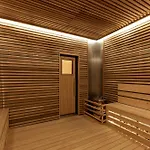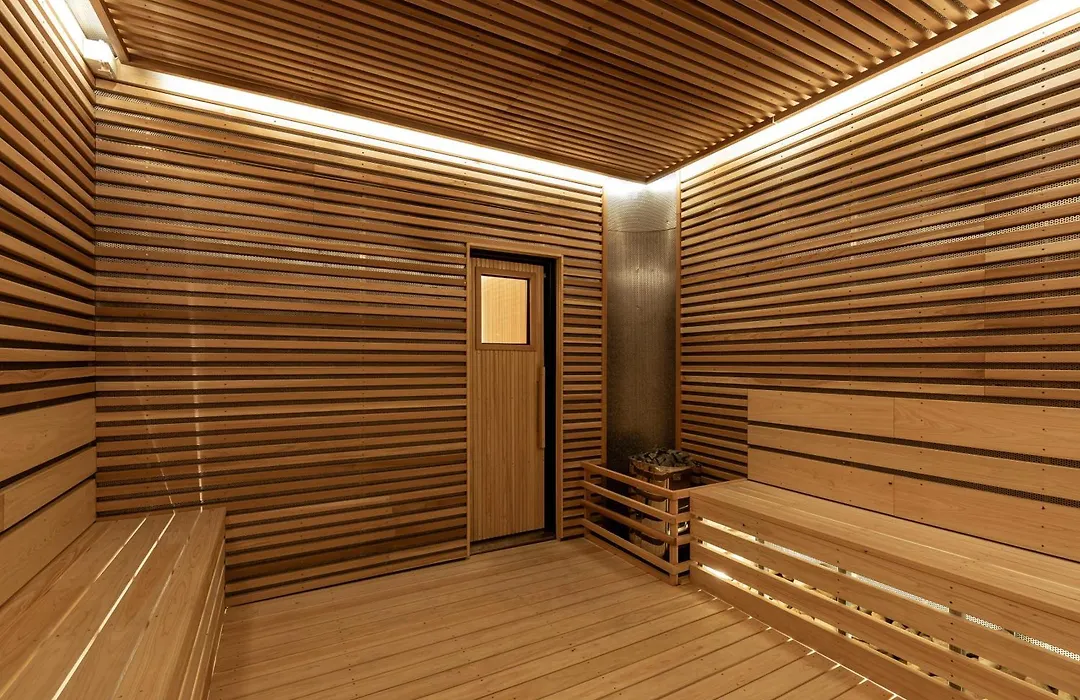 Fasilitas pantai di antaranya payung. Ada suite kebugaran di tempat.